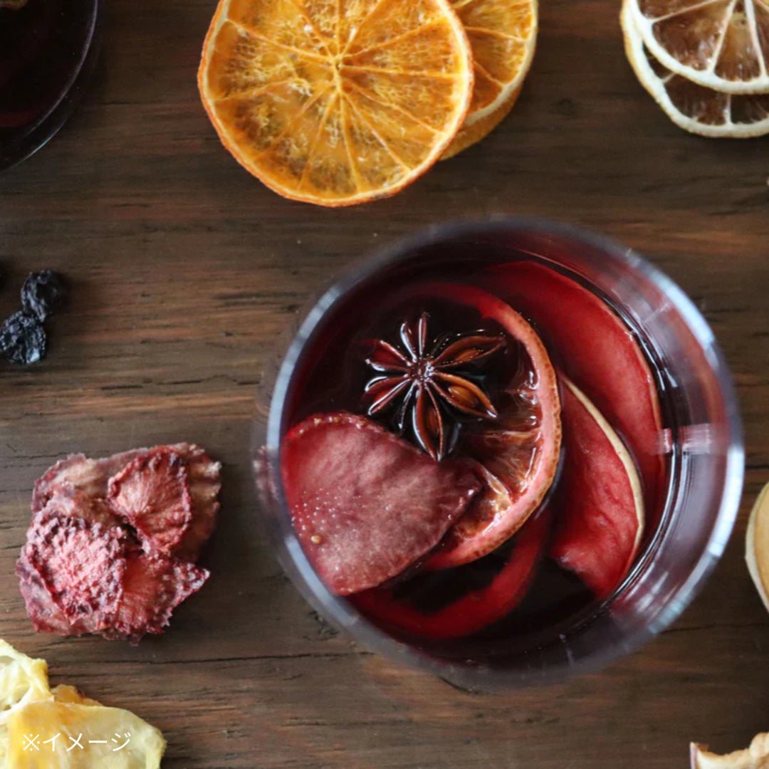 ドライフルーツを使用した本格的なサングリアベース2種類のセットです。農家が愛情を込めて育てた果物が、規格外という理由で消費者に届かないことはもったいないという思いから、ドライフルーツを製造する「BLUE BLUEBERRY FARM」と提携し、商品化が実現しました。