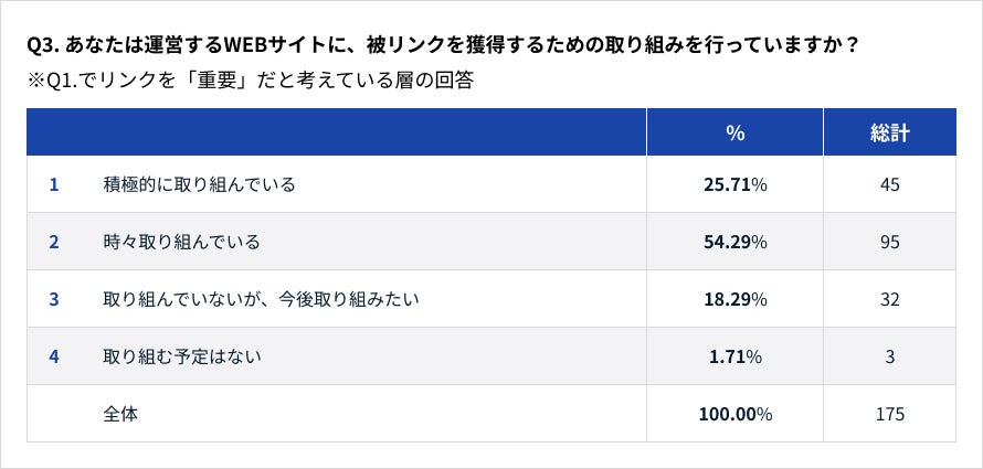 Q3. あなたは運営するWEBサイトに、被リンクを獲得するための取り組みを行っていますか?