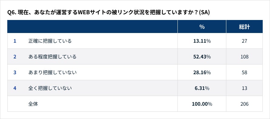 Q6. 現在、あなたが運営するWEBサイトの被リンク状況を把握していますか?