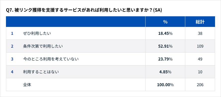 Q7. 被リンク獲得を支援するサービスがあれば利用したいと思いますか?