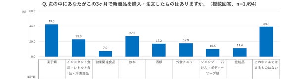 続いて、調査では過去3ヶ月間に購入・注文した新商品について調査されています。