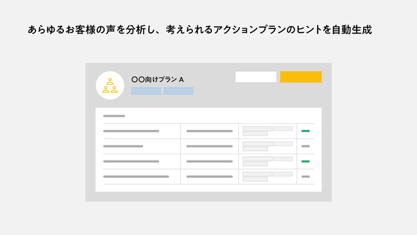 商品企画、販促企画、営業シーン、店舗開発、PR、プロモーション、SNS運用など、各部門や施策に対して、新たな「気づき」と「アクションヒント」を自動生成します。顧客の声や気づきを単なる発見で終わらせず、次のアクションヒントを提示することで、導入企業の顧客体験向上に向けた意思決定や施策実行をサポートします。