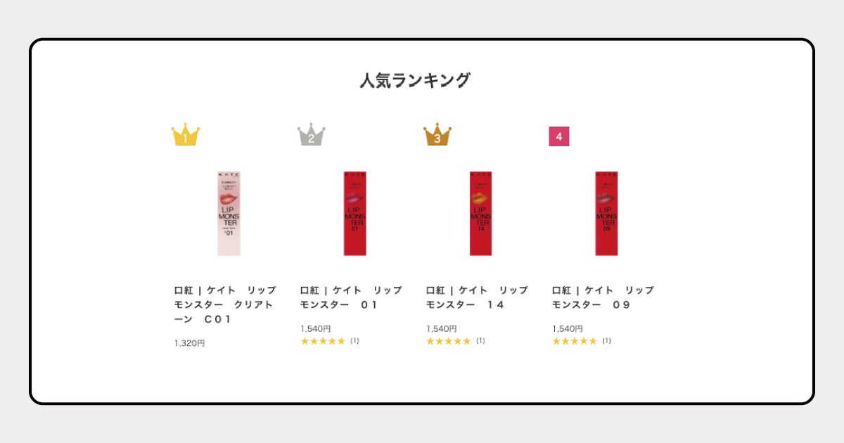 先行して導入されていたZETA製品との連携により、『検索結果ページ』や『人気ランキング』で表示される商品情報に5つ星評価が追加されました。この機能強化により、商品の評価が視覚的に分かりやすくなり、サイト全体の利便性向上に寄与しています。