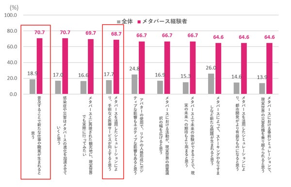 - 1 メタバース経験者は、メタバースが幅広い分野で自身や社会の可能性を広げると信じている