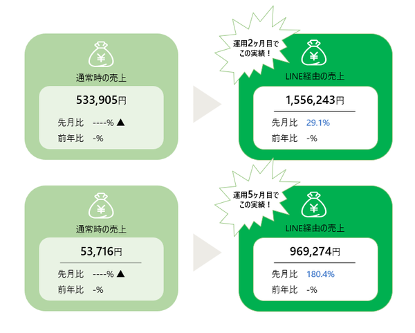 実際の導入事例を見ると、ある企業では運用開始からわずか2ヶ月でLINE経由の売上が150万円を突破。訪問者数は前月比で49.9%増加し、転換率も32.7%を記録しました。また別の企業では、売上が通常時の約3倍となり、転換率も75.5%に達するなど、明確な業績改善が確認されています。