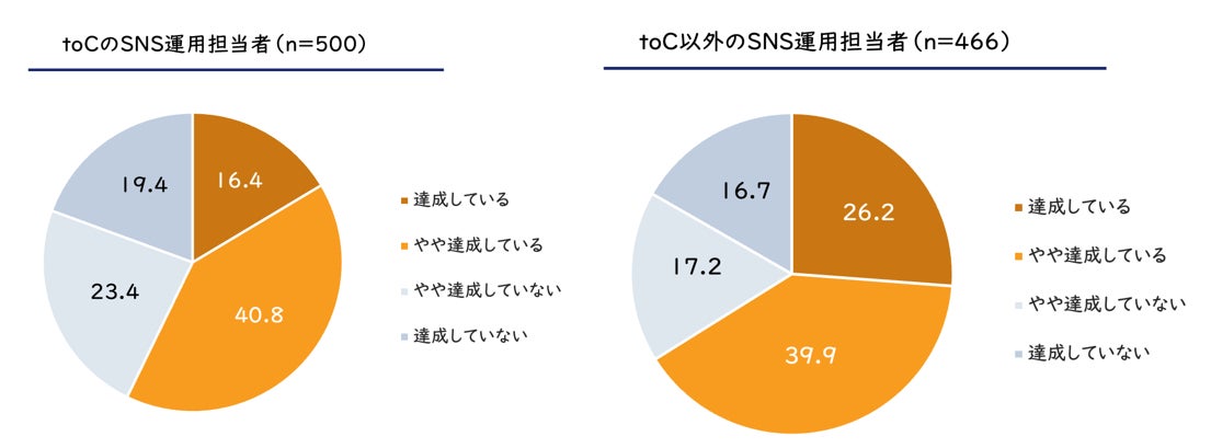 両者のKPI設定の傾向が近似していることを踏まえると、「toC」向けSNS運用のKPI水準が相対的に高く設定されている可能性があるとネオマーケティング社は分析しています。また、「toC」企業は一般ユーザーやインフルエンサーと同じ環境で競争しなければならず、エンターテイメント性・話題性・即時性がより強く求められるため、KPI達成のハードルが高くなっていると考えられています。