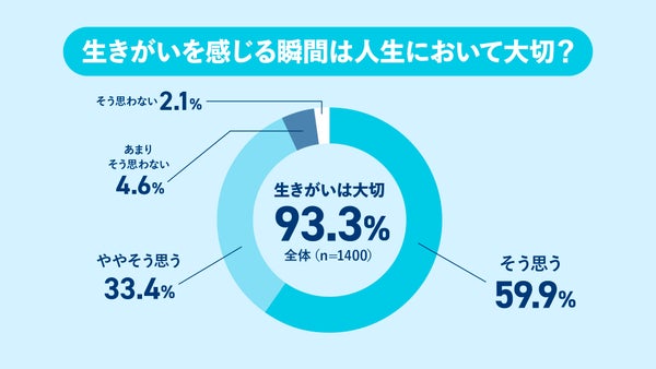- 全体の93%が「生きがいを感じる瞬間は、人生において大切」と回答