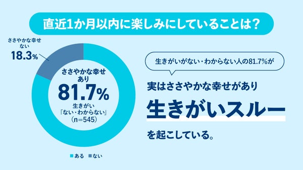 - 生きがいが「ない・わからない」人の82%が、日常のなかでささやかな幸せを感じている