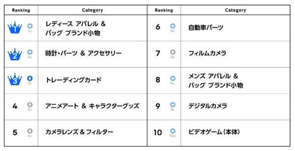 ・デジタルカメラとメンズアパレル&バッグ ブランド小物は、昨年同期、昨年年間と同様にランクインしています。