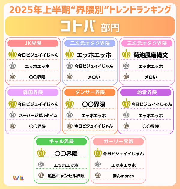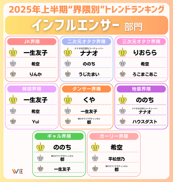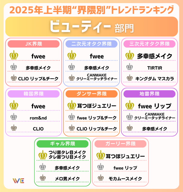 株式会社ウィゴー(本社:東京都港区芝浦 代表取締役社長:園田恭輔)が運営する「WE LABO [ヒト・コト・モノ・バ]研究所」(略称:WE LABO(ウィー ラボ))が、Z世代を細分化した"界隈"に着目した大規模調査を実施したことを発表しました。総フォロワー数57万人を超える8つの界隈のデータを分析し、2025年上半期のトレンドを9部門でランキング化した結果が公開されています。