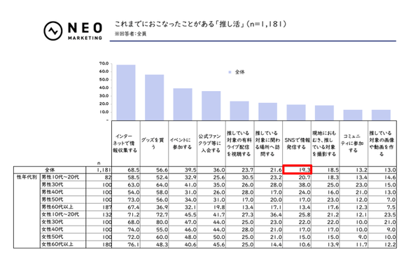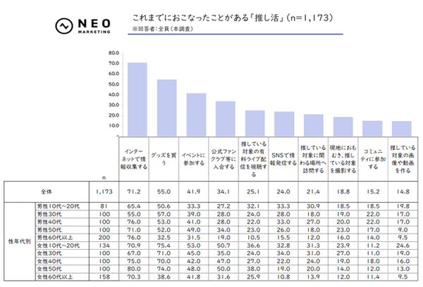 生活者を中心にしたマーケティング支援事業を提供する株式会社ネオマーケティング(所在地:東京都渋谷区)は2025年4月24日(木)~2025年4月28日(月)の5日間、全国の16歳以上の男女を対象に「推し活」をテーマにインターネットリサーチを実施したことが発表されました。