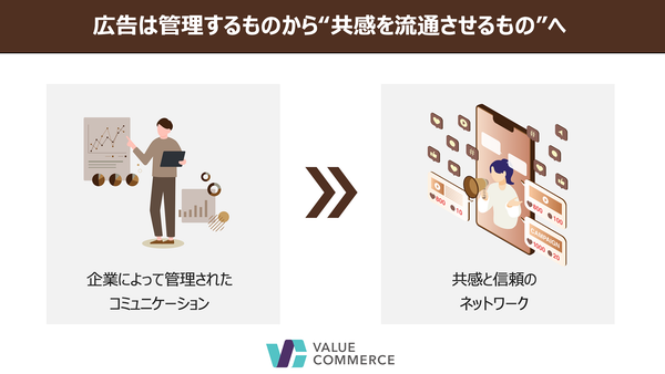 バリューコマースは、「ナラティブ・マーケティング」の未来を信じ、広告を「共感の流通」を生み出すものへと進化させていくことで、パートナー企業のビジネス発展に貢献していく姿勢を示しています。
