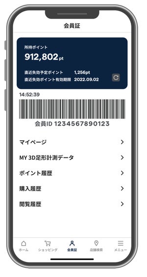 1. 会員証タブ内「MY 3D足形計測データ」をタップします