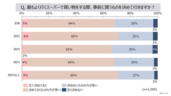 - 最もよく行くスーパーで買い物をする際は事前に買うものを「決めていくものの方が多い」64%