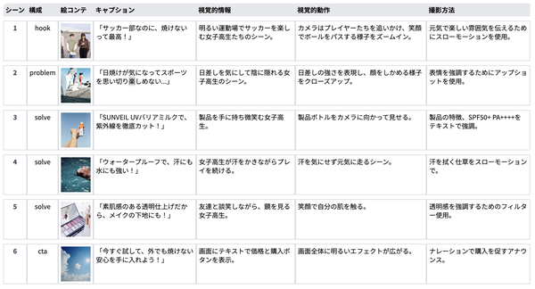 図3 選定したコメントと入力する商品・サービスの情報に基づき自動で動画企画案を出力
