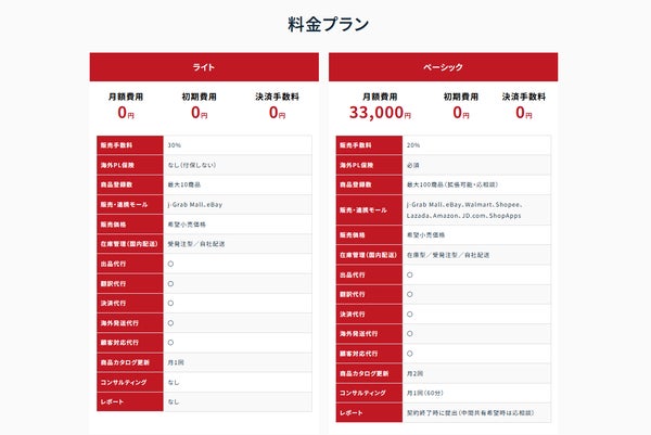 j-Grab Mallでは、最大10商品までを初期費用0円、月額費用0円、販売手数料0円でスタートできる「ライトプラン」を用意しています。これまで越境ECに挑戦できなかった事業者や、商品点数が少ない事業者、あるいは過去に挫折した事業者もノーリスクで中国市場へのチャレンジが可能になります。