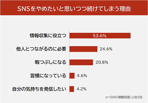 ・SNSをやめたいと思いつつ続けてしまう理由は「情報収集に役立つ」