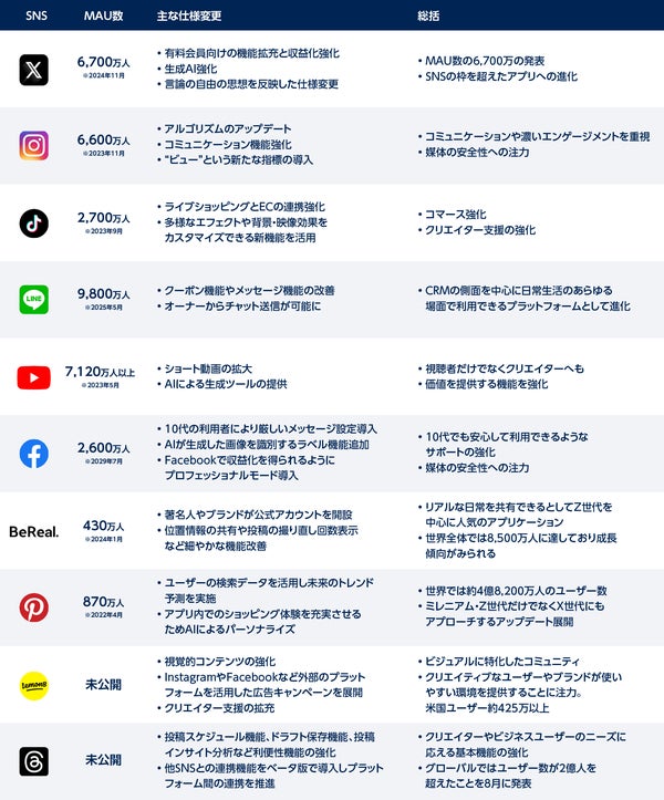 今回公開される「SNSアップデート早見表」は、企業のマーケティング担当者が刻々と変化するSNSのトレンドに対応し、効果的な戦略を立案するための支援ツールとして提供されます。