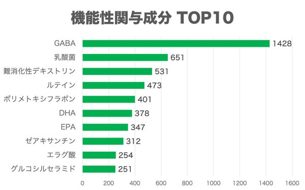 機能性関与成分の人気ランキングTOP10は以下の通りです。