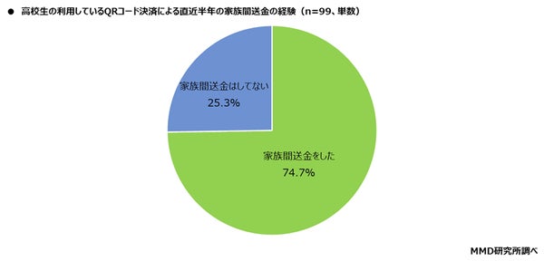 QRコード決済利用の高校生の送金経験は34.7%、うち直近半年の「家族間送金」は74.7%