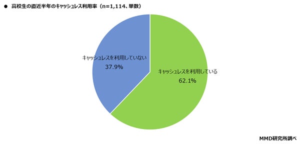 高校生の直近半年のキャッシュレス利用率は62.1%、QRコード決済は50.8%