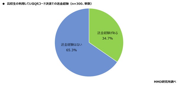 予備調査から抽出したQRコード決済を利用している高校生300人に対して、送金機能の利用経験について質問したところ、34.7%が「送金経験がある」と回答したことが報告されています。