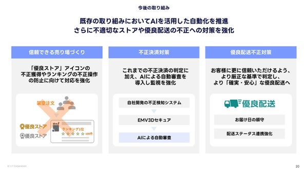 LINEヤフーは、『「WOW」なライフプラットフォームを創り、日常に「!」を届ける。』をミッションに掲げています。同社が提供する「Yahoo!ショッピング」は、今後もユーザーやストアの皆様にとって安全で、安心して利用いただけるモールを目指し、継続的な改善と取り組みを進めていくとしています。