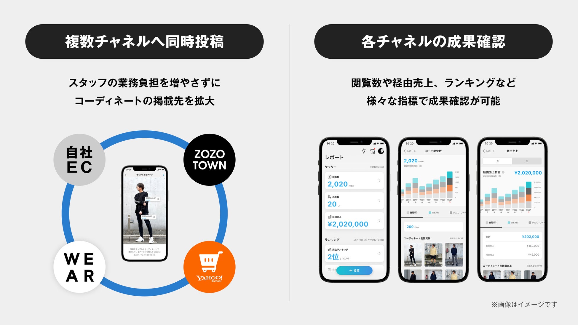 ※FAANSを通じて投稿が可能な「ZOZOTOWN」「ZOZOTOWN Yahoo!店」「WEAR by ZOZO」、ブランド自社ECにおける成果確認