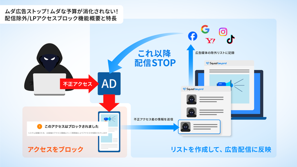 ムダな予算が消費されない。LPアクセスブロック、広告配信除外設定、レポートのデータクリアリングも。Squad beyond(スクワッドビヨンド)とは