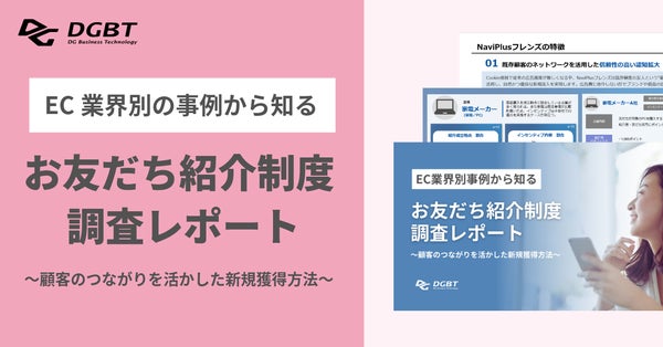 「NaviPlusフレンズ」の提供開始にあわせて、DGBTはEC業界におけるお友だち紹介プログラムの導入事例や制度設計の傾向をまとめた『EC業界別の事例から知る!お友だち紹介制度 調査レポート』を公開しました。