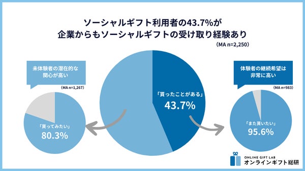 調査:ソーシャルギフト利用者の43.7%が企業からも受け取り経験あり、継続希望は95.6%に達することが判明