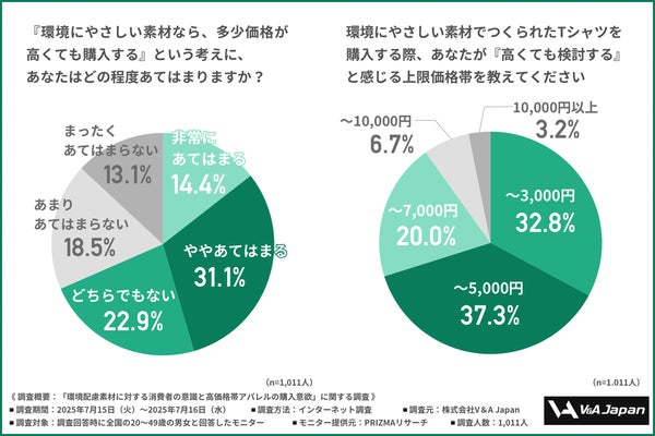 「環境にやさしい素材でつくられたTシャツを購入する際、あなたが『高くても検討する』と感じる上限価格帯」について尋ねたところ、以下のような回答結果となりました。