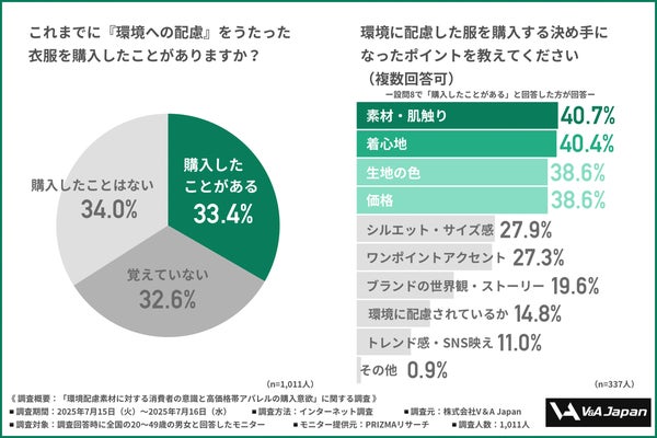 環境への配慮をうたった服の購入経験は約3割が「ある」と回答。決め手になったポイントとは
