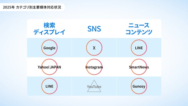 今回新たに追加されたのは、国内で圧倒的なリーチを誇るニュースアプリ、ソーシャルメディア、ネイティブ広告プラットフォームです。