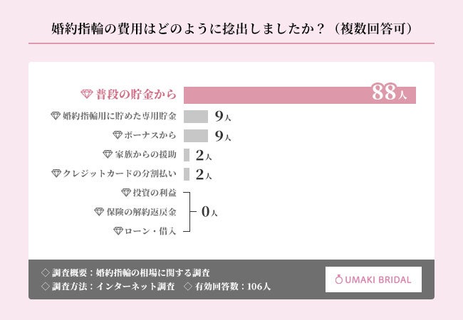 婚約指輪を費用捻出、「普段の貯金から」が圧倒的多数