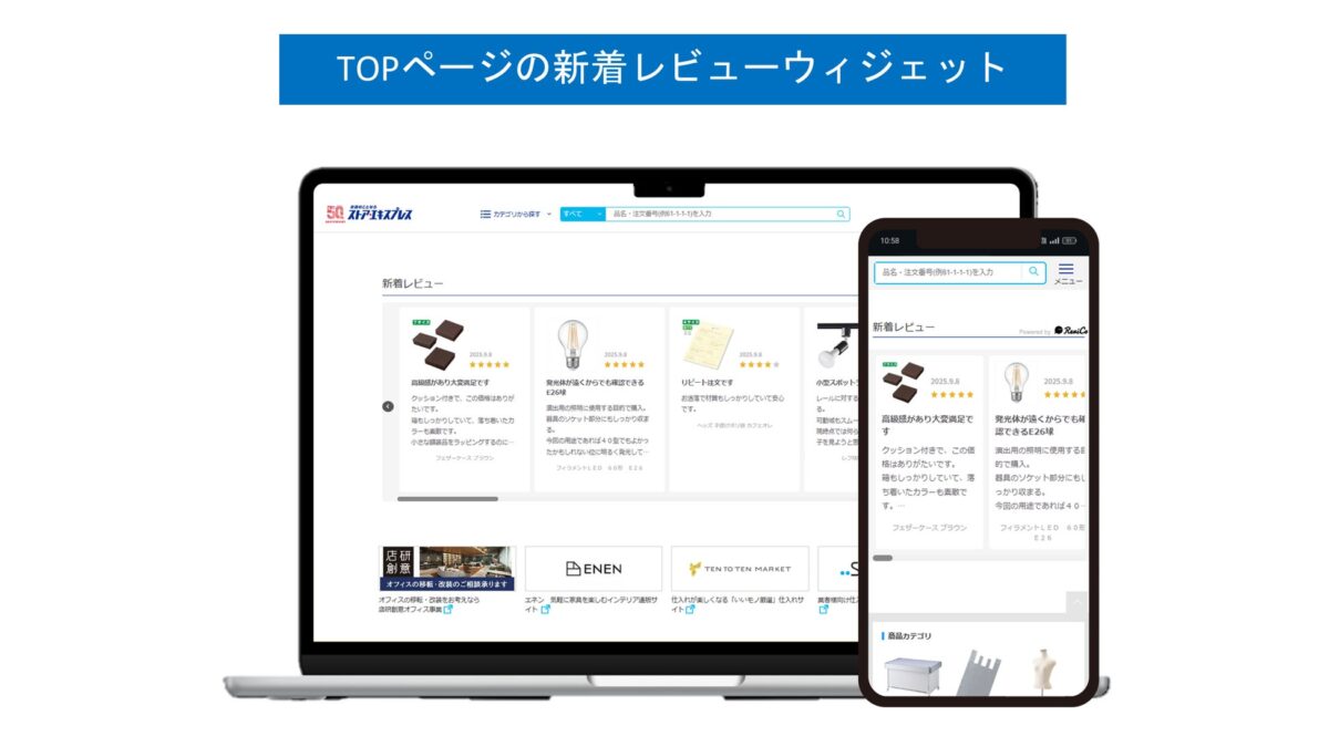 ・TOPページに、自動更新の新着レビューウィジェットを設置
