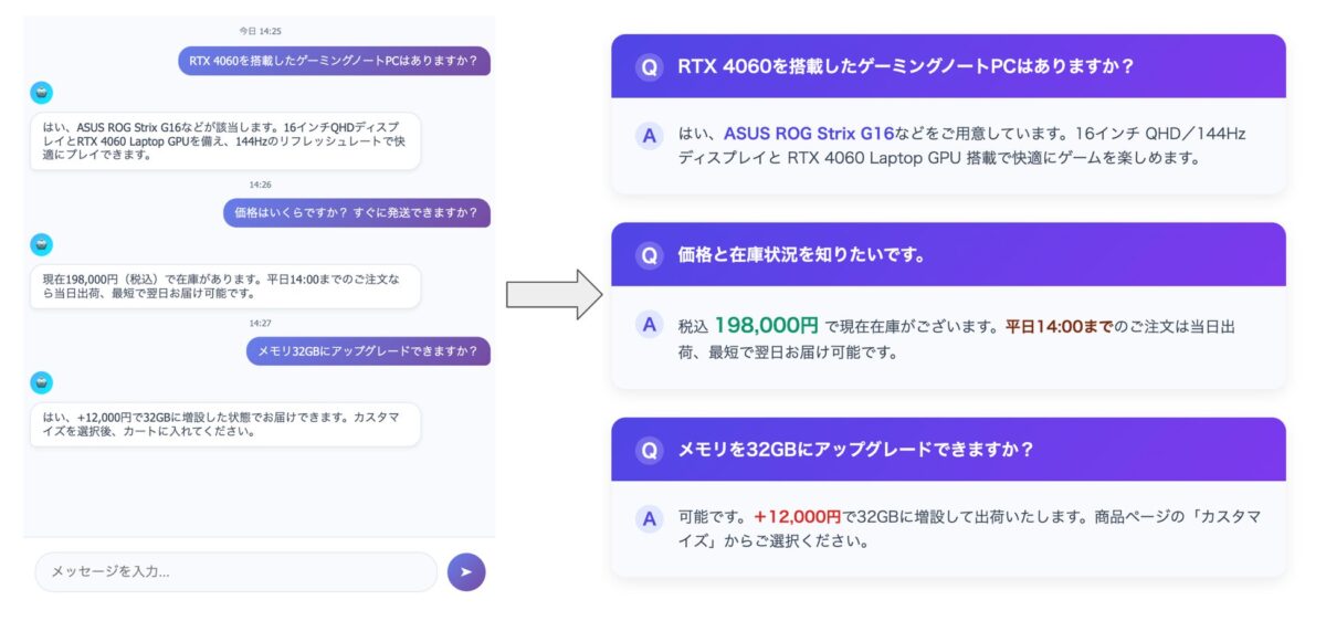 - 顧客からの質問に自然な形で回答します。