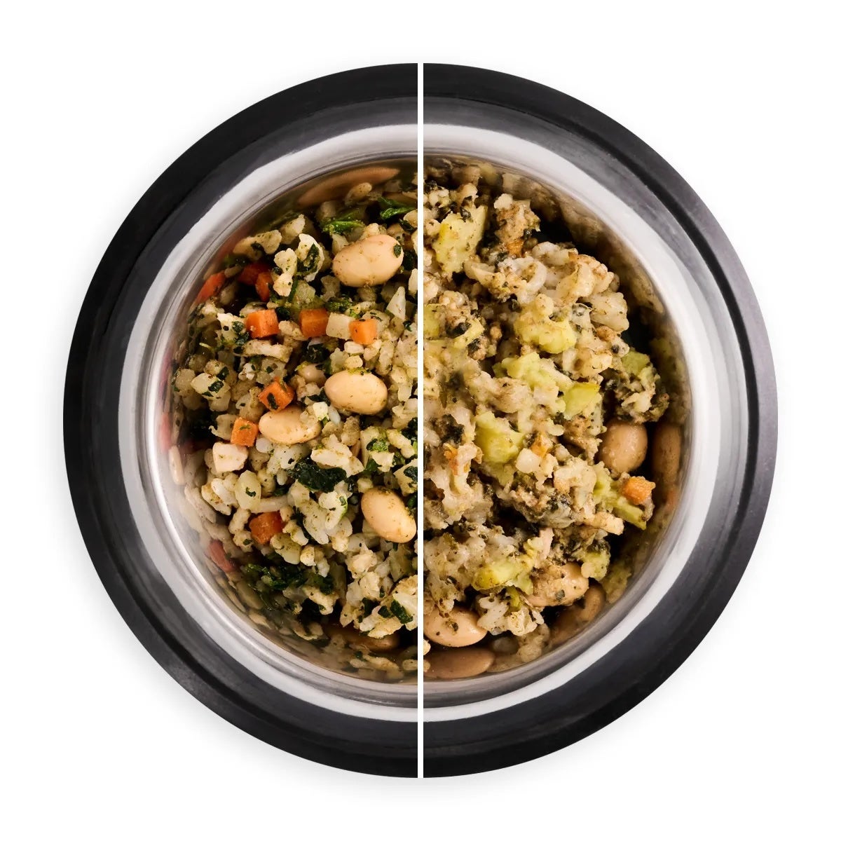チキンとクミンのスパイシーな風味が絶妙に調和したメニューです。国産鶏むね肉を使用し、ほうれん草やそら豆などの栄養豊富な野菜を加えたヘルシーなご飯となっています。ふっくら白飯とカリフラワーライスをブレンドし、食物繊維が摂取できるよう工夫されています。クミンの香りと、かつお粉末の深みが広がる味わいで、愛犬も喜ぶ美味しさが詰まっている商品です。
