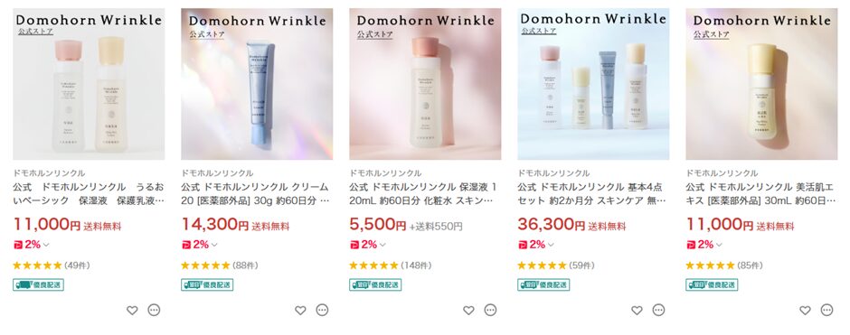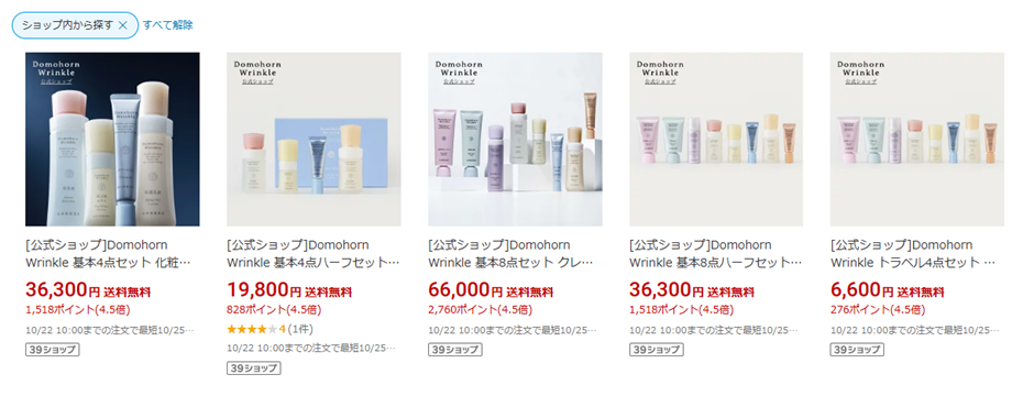 楽天市場の化粧品カテゴリは国内でも特に強く、シェアは約23.7%に達します。40~50代女性ユーザーが多く、ポイント施策も活発なため、ドモホルンリンクルのブランド文脈と非常に相性が良いといえます。出店順を「Amazon→Yahoo!→楽天」としたことで若年層から順に広げる戦略にも見えますが、楽天を先行させていればより多くの新規顧客を獲得できた可能性もあります。