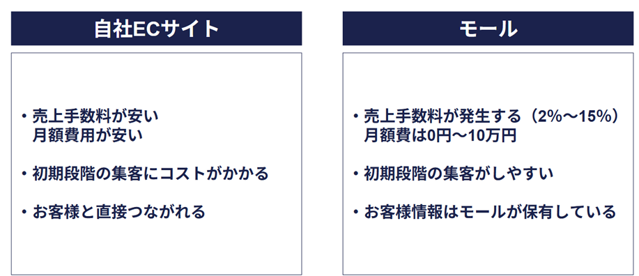 「自社EC→モール展開」と「モール→自社EC展開」の選択軸