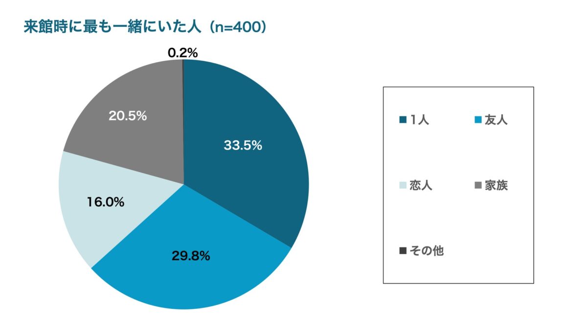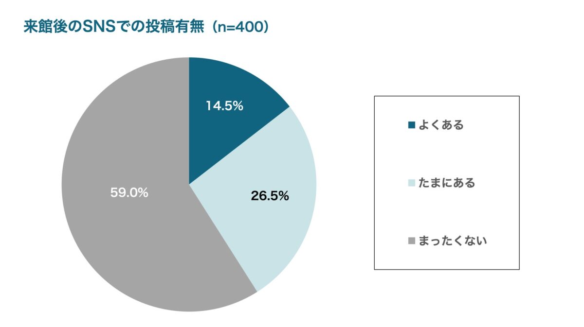 • 同伴での来館が全体の6割を超え、SNS投稿経験も一定数(41.0%)存在することから、誰かと共有したくなる体験が来館行動を後押ししていることが明らかになっています。