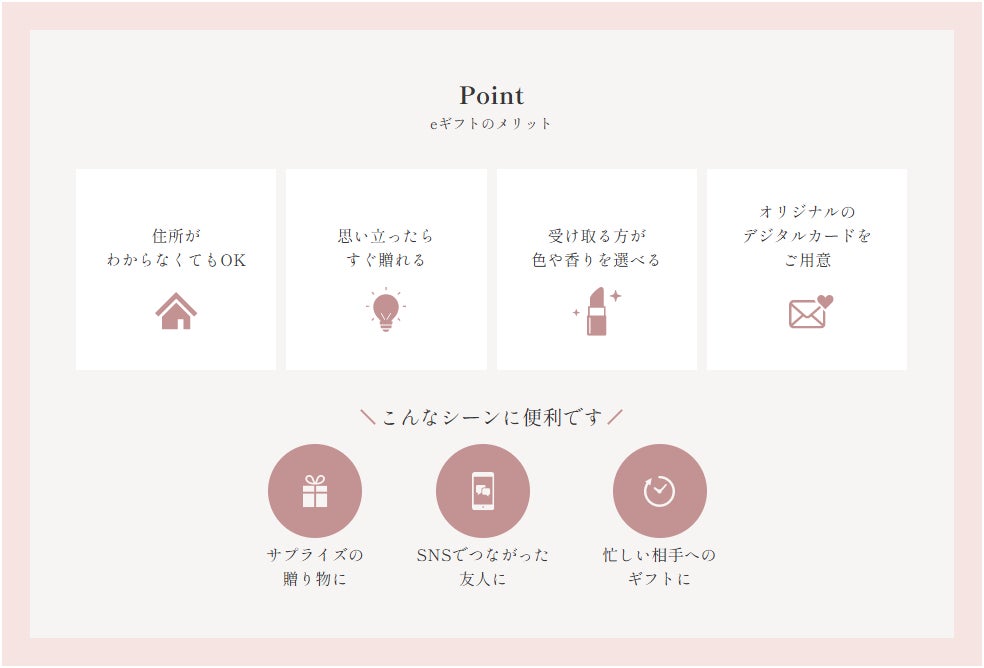 この機能により、「JILL STUART Beauty」と「Flora Notis JILL STUART」のオンラインショップで、リップ、アイシャドウ、フレグランスといった人気商品をeギフトとして贈ることが可能となりました。