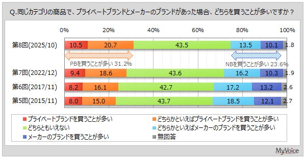 マイボイスコム株式会社(東京都千代田区、代表取締役社長:高井和久)は、8回目となる『プライベートブランド商品(PB商品)』に関するインターネット調査を2025年10月1日~7日に実施しました。この調査ではプライベートブランド商品の購入状況や意向、選択理由などについて調査されており、その結果が公表されています。