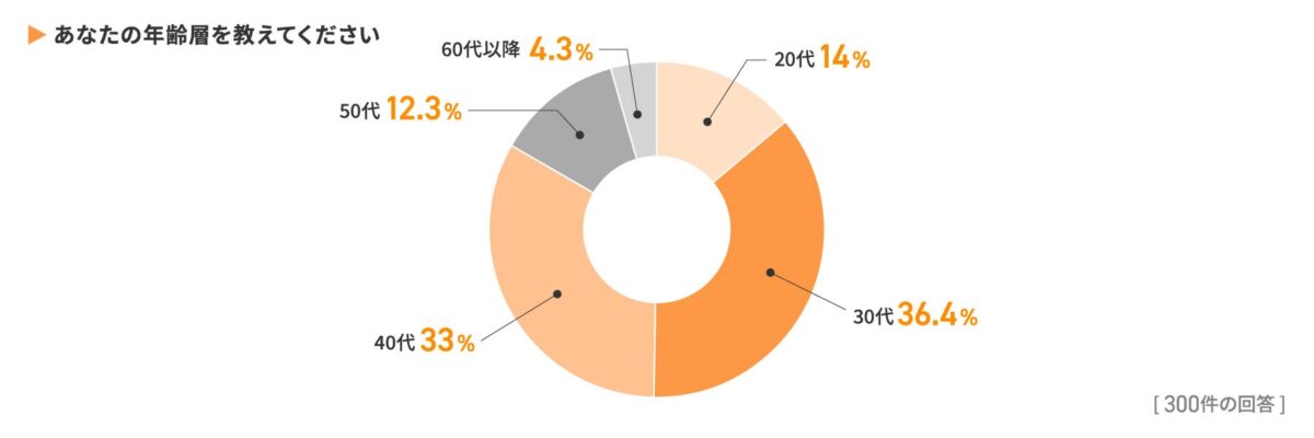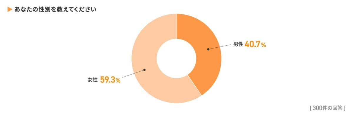 この調査では全国の男女300名を対象として、効果的なチラシの特徴についてアンケート調査が実施されたとのことです。回答者の性別は女性が59.33%、男性が40.67%となっています。年齢層は30代と40代が中心で、全体の約70%を占めていることがわかります。