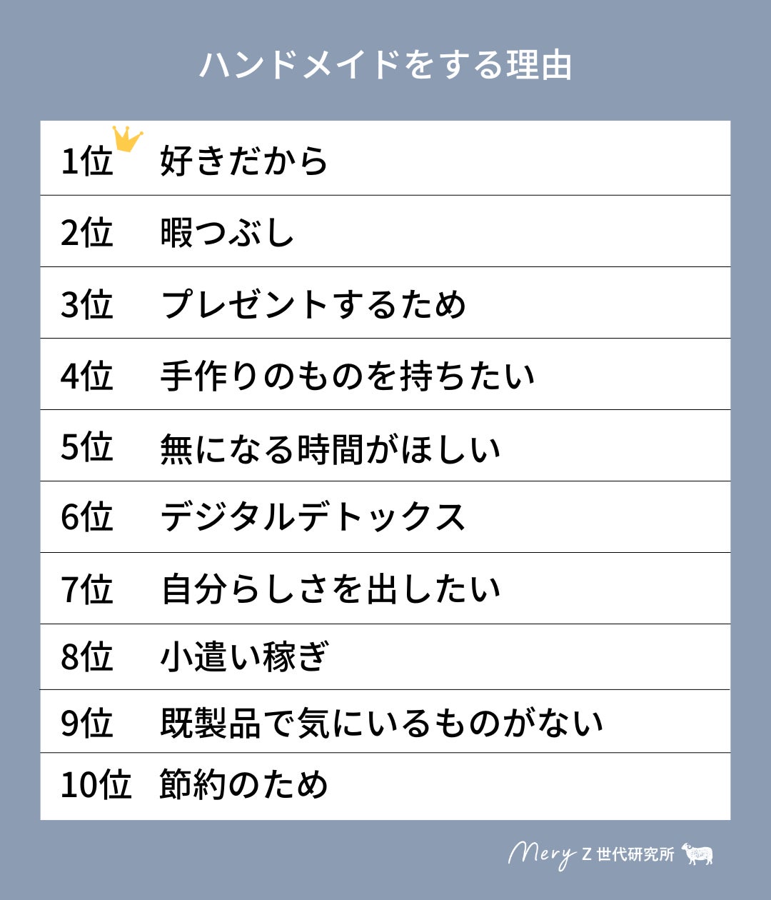 株式会社MERY(本社:東京都千代田区 代表取締役社長:藤田 欣司)が運営するデジタルメディア『MERY』は、Z世代の意識や行動を詳しく分析するため、定期的に「Z世代調査」を実施しています。このたび、2025年10月に行われた『ハンドメイドに関するMERYアンケート』の調査結果が公開されましたのでご紹介します。