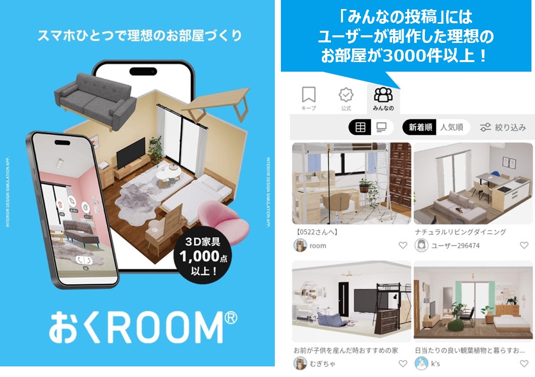 LOWYAでは、"新しい部屋に家具が合うか心配"や"模様替えしたいけど、イメージができない"といったユーザーの悩みに応えるため、購入前や引越し前、模様替え前に理想のお部屋をスマホ内でシミュレーションできる3D家具配置アプリ「おくROOM®」を構想から12年かけて開発したとのことです。2024年11月にローンチし、2025年11月時点で累計60万ダウンロードを突破しています。