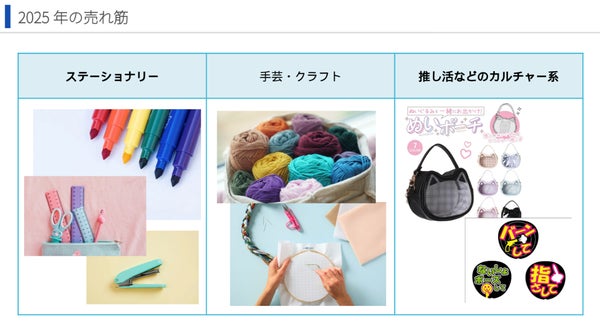 SD exportでは、「ステーショナリー」「手芸クラフト」「推し活などカルチャー系商品」の3つのジャンルに特に注目が集まったことが報告されています。