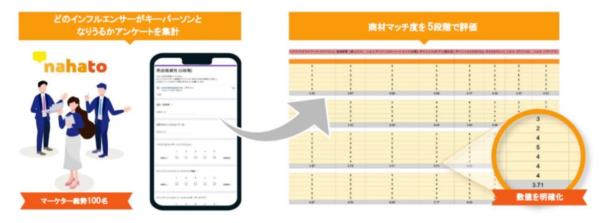 株式会社ナハトでは総勢100名以上のマーケティングプロフェッショナルによる綿密なアンケート調査を実施し、実際のデータに基づいてキーパーソンを特定する手法を確立しています。例えば、美容系インフルエンサーの場合でも、「プチプラコスメ」「デパコス」「ヘアケア」など、それぞれに得意分野が存在し、同じインフルエンサーでも投稿内容によってエンゲージメント率に大きな差が生じることを数値データで実証しているとのことです。