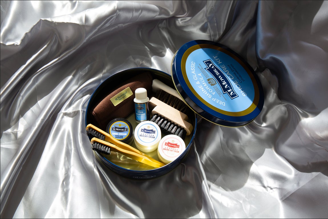 革靴を、より美しく磨き上げるための「エドワードセット」は、汚れ落としからツヤ出しまで、靴のお手入れに必要なアイテムをひとつにまとめた総合シューケアセットです。初めての方でも扱いやすい設計で、上質な艶と深みのある仕上がりを実現します。