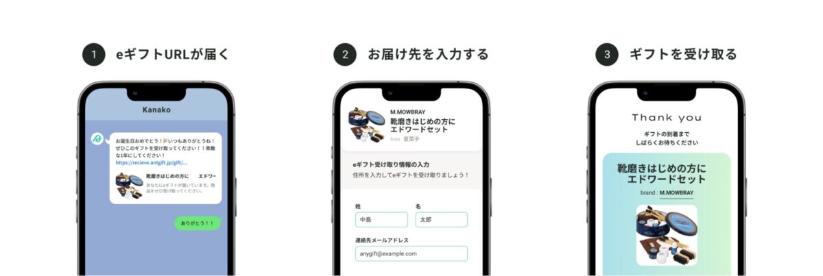 eギフトURLから住所を入力いただくだけで対象商品が届きます